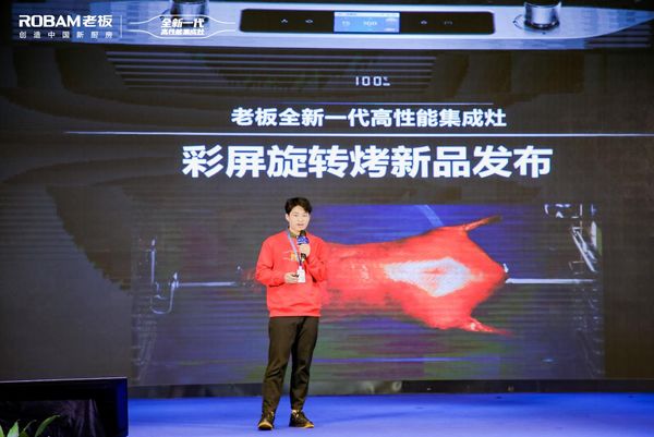 在大腔集成灶新品之外,本次发布会老板集成灶还推出了新产品新技术——彩屏旋转烤,不仅在烟灶等性能上有进一步提升,火力达民用最高5.2kW,1100Pa持续静压;还升级智控彩屏,TFT彩屏让操控全程可视化、整机控制;通过行业首创增加旋转烤模式,旨在行业形成差异化,进一步升级蒸烤能力。