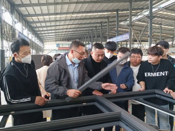 当天下午,在公司总部生产加工车间,业务经理给大家详细讲解了门窗的生产加工流程及工艺,主要针对铝型材、组角工艺、锯切工艺、密封胶条等,让大家有了更直观的感受以及更深入的了解。