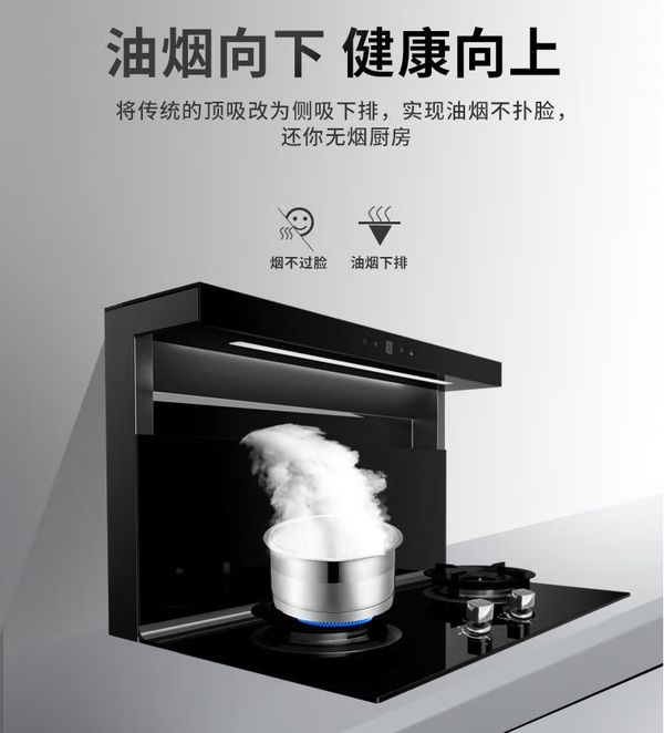 博净嵌入式集成灶根据微空气动力学原理,采用侧吸下排技术,升级挡烟板至黄金高度,形成黄金控烟区,牢牢把油烟控制在升腾区,不给油烟一丝逃逸的机会。摆脱油烟四起咳嗽不断的烹饪之苦,清新健康的呼吸。