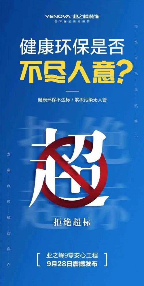拒绝超标!9月28日,业之峰“9零安心工程”震撼发布,业之峰集团郑重承诺:环保0超标,环保不达标,全额退款。