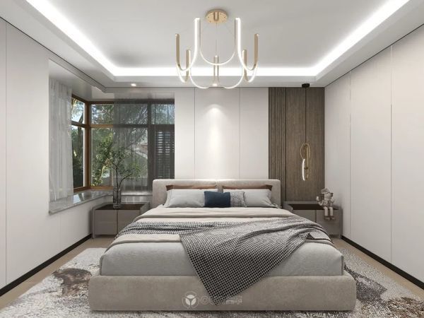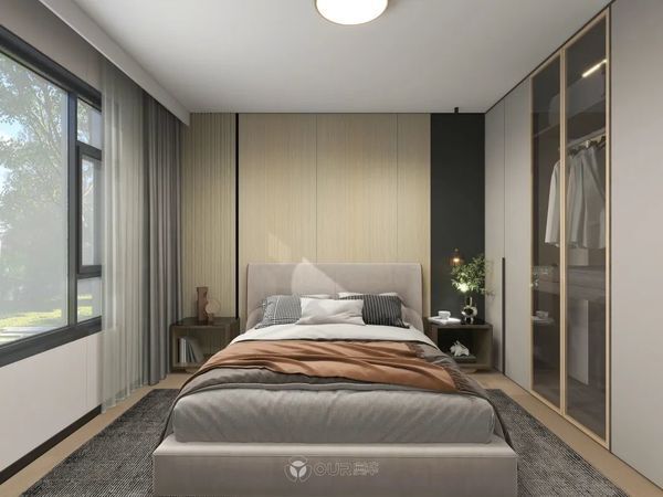 卧室内,延伸的背景饰面,是定格的暖,绵延出悠长的生活底色,另一层来自于自然纹路,于方寸之间攀生。