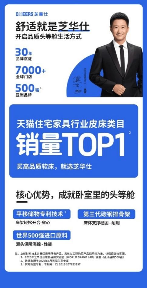 快节奏的生活和内卷式的工作压力下,一个健康舒适的睡眠环境显得尤为重要。芝华仕深研舒适领域三十年,凭借硬核的研发实力给消费者带来多款舒适佳品。芝华仕广纳人才,组建一支来自国内外的精英设计团队,通过多次的市场调研和方案调整,最终形成产品方案。生产过程中依托母公司敏华控股集团200多项认证专利和技术,如经历50000次耐久测试的气压杆、能减震防潮的象形骨架、产研一体数控化的高弹海绵等,以科技打造芝华仕的独家舒适睡眠。正是在研发、生产等多端发力,成就了芝华仕不可复制的产品舒适力。据悉,芝华仕在家居行业床垫、皮床等类目的销量都处于领先位置,这也是市场对芝华仕品质强有力的反馈。