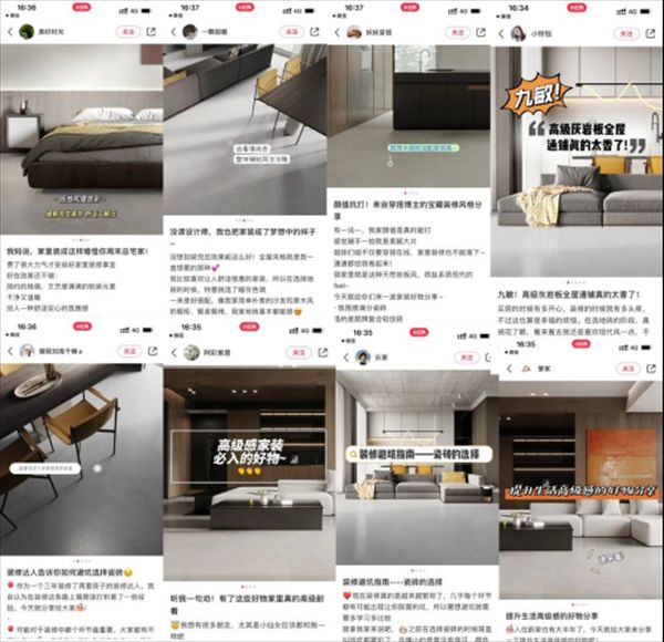 箭牌复合轻纹砖洞察当下消费者的习惯,抓住用户心智,通过小红书、抖音、微信视频号等各大种草平台输出优质的品牌与产品内容,让用户对复合轻纹产品产生情感共鸣,实现品牌与消费者之间更有温度的连接。