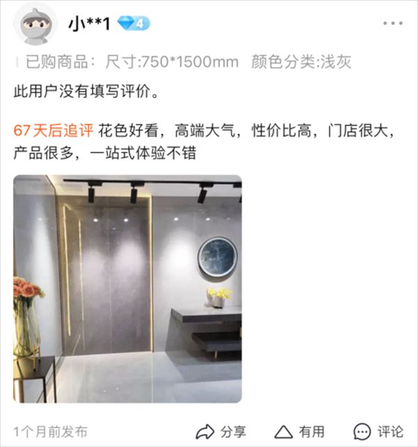 天猫作为一个方便更多用户快速、便捷购买产品,提升用户购物体验感的平台,箭牌复合轻纹砖积极拥抱新零售,将传统的线下销售模式转化为“线上+线下”双向引流、协同发展,全面赋能终端门店,实现业绩的跨越式增长。