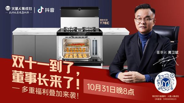 一年一度的双十一即将到来,如果想体验厨房先锋浪漫的设计美学,一定要关注火星人集成灶,此次火星人董事长亲自上阵,将于10月31号晚上8点在抖音火星人官方直播间(抖音号:595500822),回馈客户多重福利。
