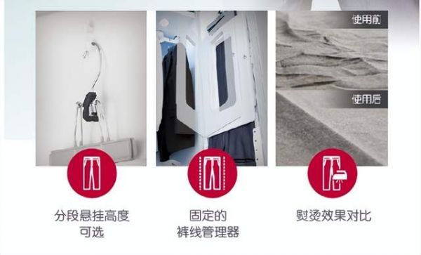在日常面临羊绒、蚕丝、皮草等特殊材质的服装时,频繁洗涤易造成磨损,干洗店所使用的化学洗涤剂也会对面料质感造成破坏。在吃完火锅时,食物气味附着在衣物上难以去除。 在阴雨连绵时,衣物受潮不易晾干容易滋生细菌等问题。LG通过高端洗护理念,为用户带来衣物护理新体验。出席商务会谈等重要场合前,无需送到干洗店熨烫,把正装放入衣物护理机后,衬衫去皱、裤线恢复、外套挺括,穿着登场便保持优雅有型。儿童衣服与玩具放入衣物护理机后,有效杀菌消毒、去除过敏原。活动聚餐后,避免异味扩散回家把衣物挂入蒸汽护理机,快速去除各种异味让衣物焕然一新。每逢梅雨时节,打开门可以为整个房间除湿,让空间恢复舒适的干爽。