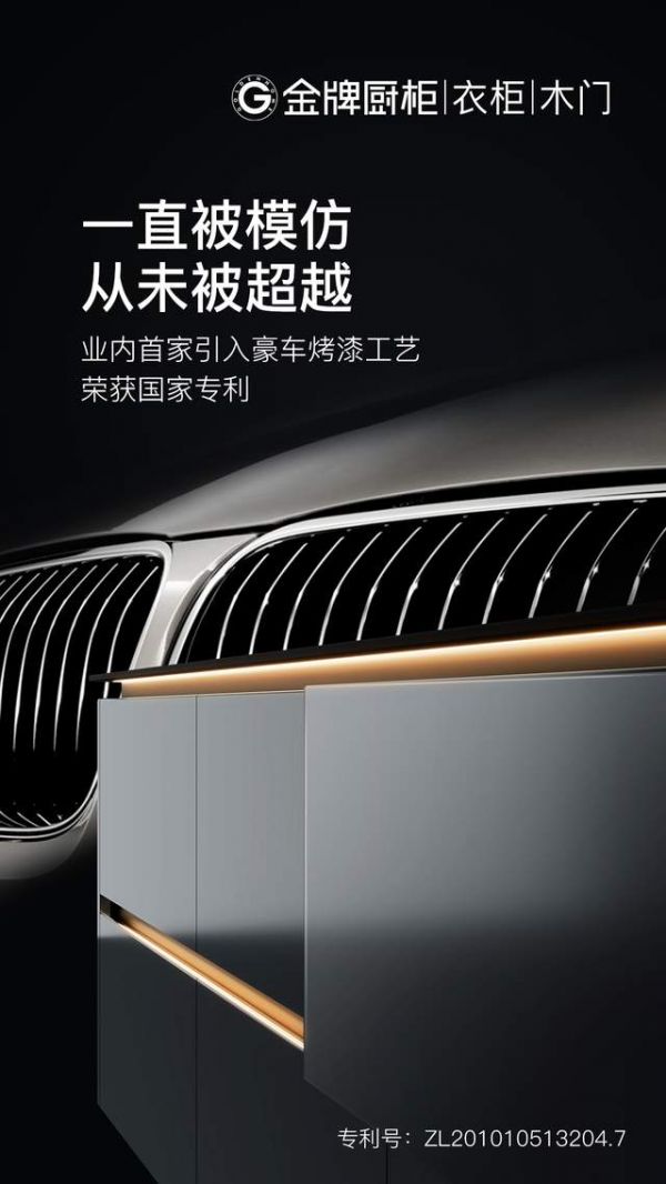所谓的烤漆,本质上是一种工艺,而非一种产品。2001年,金牌厨柜将原本应用于汽车的金属漆和烤漆工艺引入创新橱柜面板的开发,进而催生了烤漆橱柜这个特殊的高端橱柜品类。自此之后,烤漆面板在高端橱柜面板市场,一直处于统领地位。