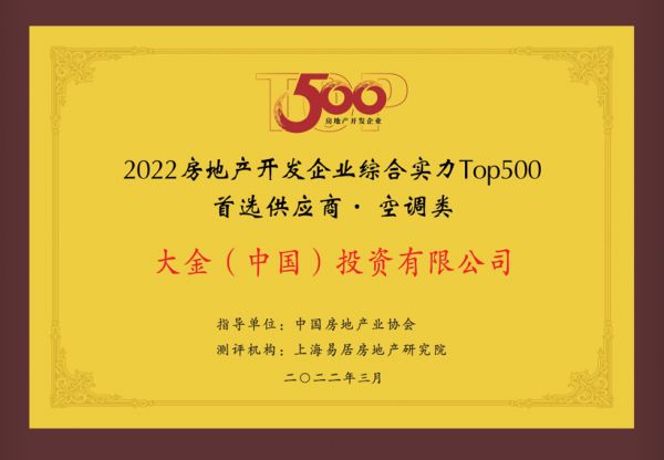专注于打造舒适空气的大金,获得了诸多500强房地产商的认可,更连续13年荣获“房地产开发企业综合实力TOP500空调类首选供应商”,大金也越来越多地出现在全国各地的品质之家中,默默守护国人的每一次呼吸。