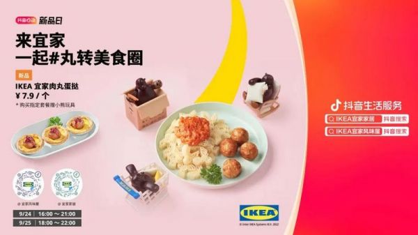 基于美食打卡与家居生意的连接热点,9月22日起,宜家联合抖音心动新品日IP推出独家新品「肉丸蛋挞」,通过打卡照、探店视频打造网红心动目的地;集结35位达人在线打call,主厨站台传授肉丸料理独家心法催生产品热度,使#丸转美食圈 话题持续发酵,最终收获千万曝光。