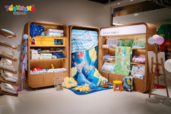 TUTUMOMO2.0概念店围绕“帮助小朋友圆梦”的主题,门店内部设有设计师产品展示区、画作展览区、扎染+丝网、数码印花、量身定制专区、邮筒画作征集互动区,完善并拓展“儿童原创IP”概念系列产品,创造儿童原创家居独特的吸引力,利用多种项目的体验模式,为小朋友提供多元化体验感。