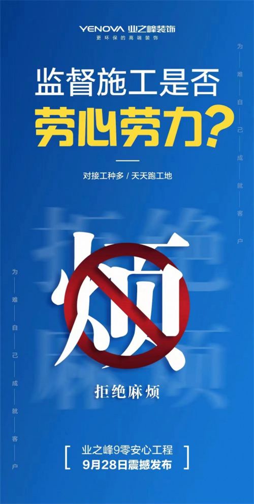 拒绝麻烦!9月28日,业之峰“9零安心工程”震撼发布,业之峰集团郑重承诺:过程0担忧,不懂有人帮,没空也能盯。