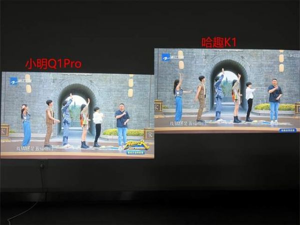 在画面上,哈趣K1会稍微亮一点,哈趣亮度有800ANSI流明,小明Q1 ro有600ANSI流明,在黑色的细节表现上,哈趣K1更胜一筹。在色彩的表现上哈趣K1会更加艳丽。