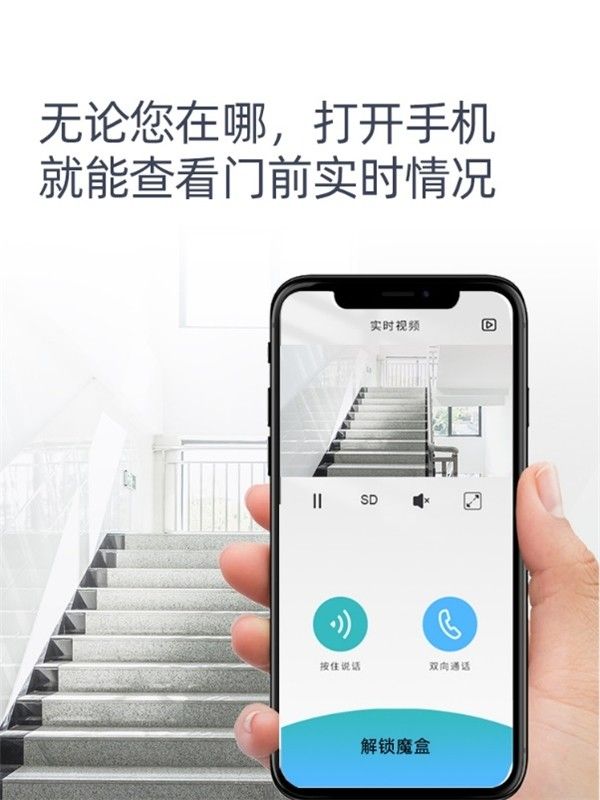当来访者按下门铃时,用户手机会同步收到通知,通过APP与来访者可视通话,可实时了解情况。用户在上班或者外出时,也可以通过手机app随时查看门前动态,搭配400w超清像素摄像头和大广角视野,让门前情况尽在掌握。