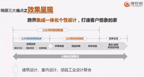 此类合作形式无需地产商给出具体的精装房源数量,而是根据已售房源数量与客户进行一对一精装服务,帮助地产商节省大量资源。且搜好房为客户提供全程专业的家装定制服务,让客户对家装风格和用材自由组合,为未来生活场景容易出现的问题提出系列解决方案,实际体验到“家装DIY”的乐趣。