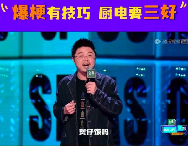 呼兰将话题引导到了他的“鸡娃”、“内卷”广东朋友。这个广东朋友家里有小孩子学烹饪,在呼兰看来,这么点的小朋友吃饭都费劲,还让他学做饭,小孩子还没有锅大,担心小孩子掉锅里把自己做了,此时呼兰抛出广东“煲仔饭”的梗,又是引来全场的爆笑。