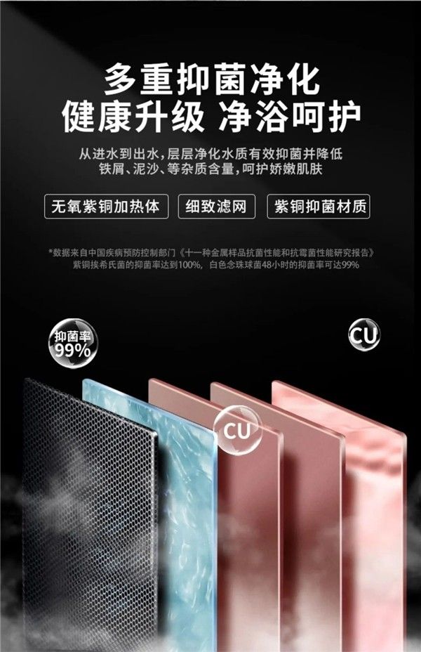 同时,诺克司星炫E2双无氧紫铜加热体结构双引擎瞬热,具备巴氏高温杀菌,实现热水器整胆高温灭菌,灭菌率达99.9%,可使洗浴水质更加健康。