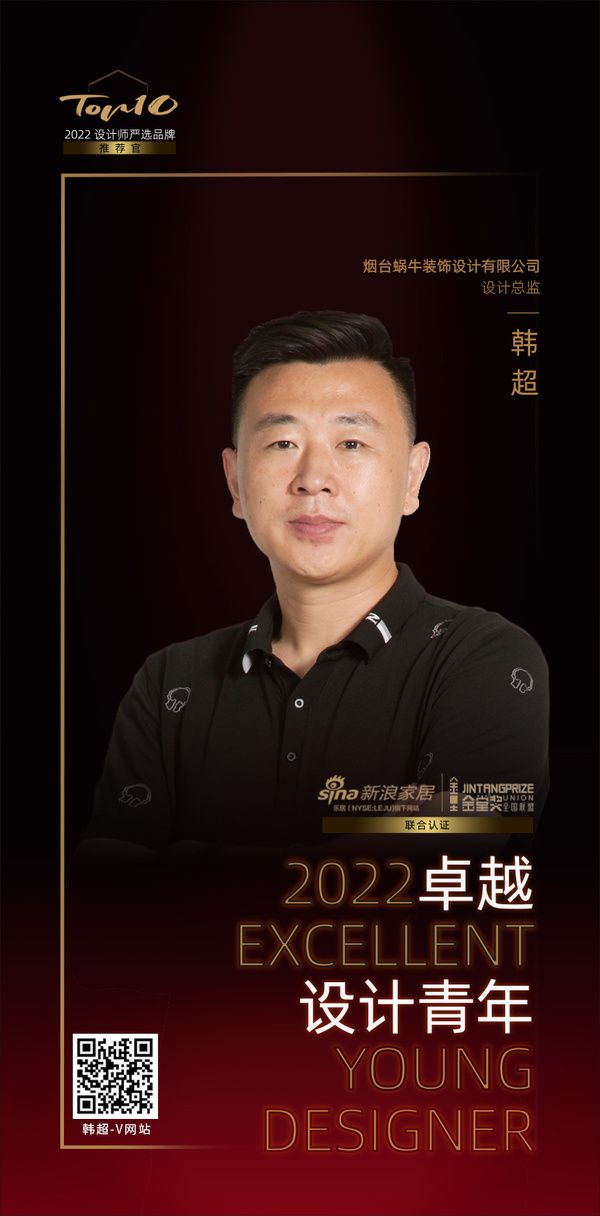 “2022卓越设计青年”由新浪家居和金堂奖全国联盟发起,是设计业界最具传播价值的年度先锋荣誉,新浪家居与金堂奖联名认证。旨在发掘和表彰室内设计领域表现卓越的杰出青年设计师。设计师韩超荣膺“2022卓越设计青年”称号。