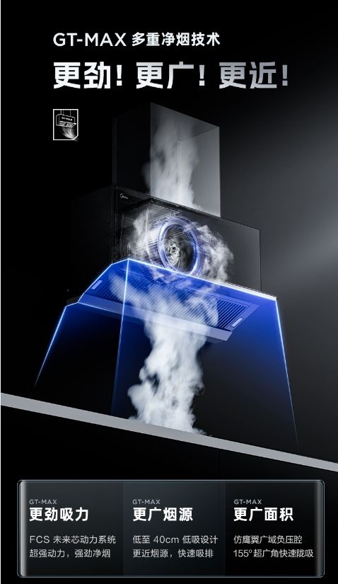 美的ZA8刷新更劲、更广、更近的净烟体验,让用户净享健康深呼吸
