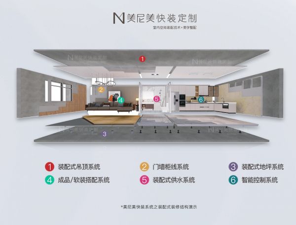 两年间,美尼美快装定制做了不少动作,从源头原材料供应到整体空间交付落地,从产品端到生产端,从室内空间装配技术到空间品类集成,美尼美完成新型装修公司模式的打造,通过一体化设计、一体化服务、一体化交付,为消费者提供包含装配式顶墙、装配式供水系统、装配式地台系统、全屋定制、内门、成品家具,软装搭配等,以5大风格、6大产品系统、10大空间,为广大消费者提供一站式全案家装解决方案,实现从毛坯房到拎包入住的家装服务。