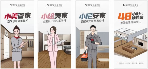 与此同时,美尼美快装定制建立独特的三大服务体系“小美管家、小绘美家和小尼安家”,开创家装新服务先河,打造独具品牌特色的发展之路。传统装修行业的入门槛低,以前只要懂装修设计、懂施工现场管理、懂装修材料等这些专业技能,即使没有一整套完善的标准体系,如产品体系、交付体系和服务体系,也能够轻松占有市场。
