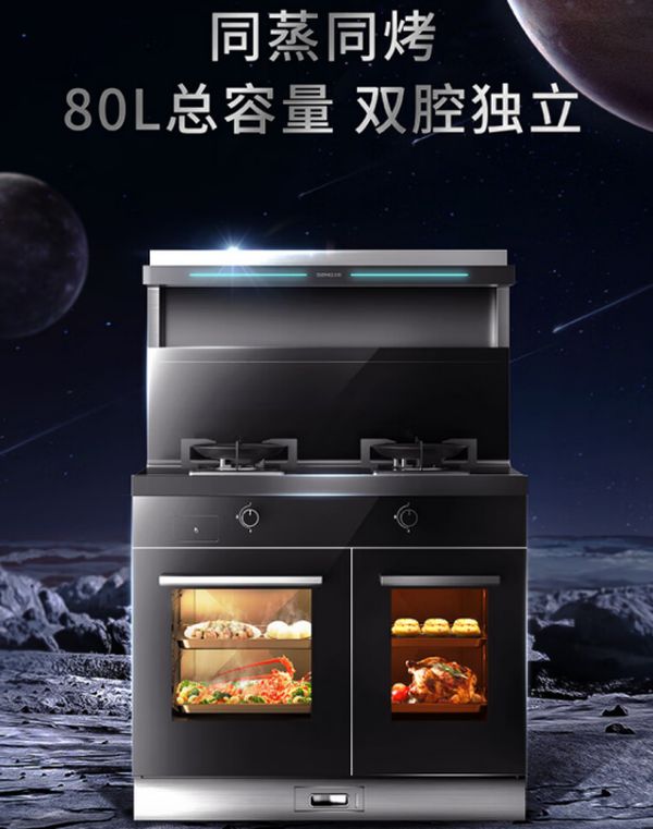 T3独立蒸烤集成灶将烹饪区域划分为上爆炒下双腔蒸烤,蒸烤区配置了80L大容量,突破空间与时间的上限,针对当代消费者对高效率的突出追求,森歌T3SZK-G给出了最优解。