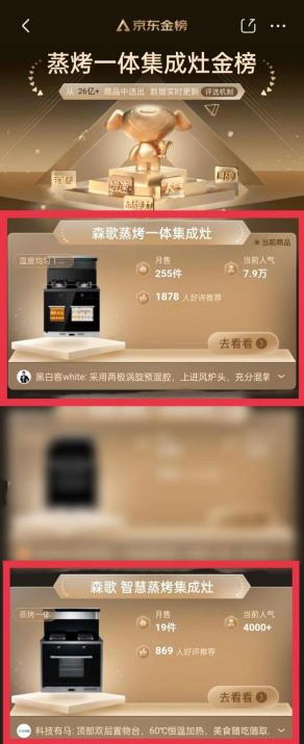 在京东金榜——蒸烤一体集成灶金榜上,森歌T3独立蒸烤升级款集成灶位列榜首。集成灶产品竞争激烈,蒸烤一体的品类更是各品牌重要角逐阵地,能在此重围中脱颖而出,森歌集成灶的产品力毋庸置疑。