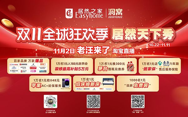 11月2日,居然之家乃至整个家居行业最强的直播IP“老汪来了”将再度如约而至,整场直播分为福利场和狂欢场,优惠力度全年最高。