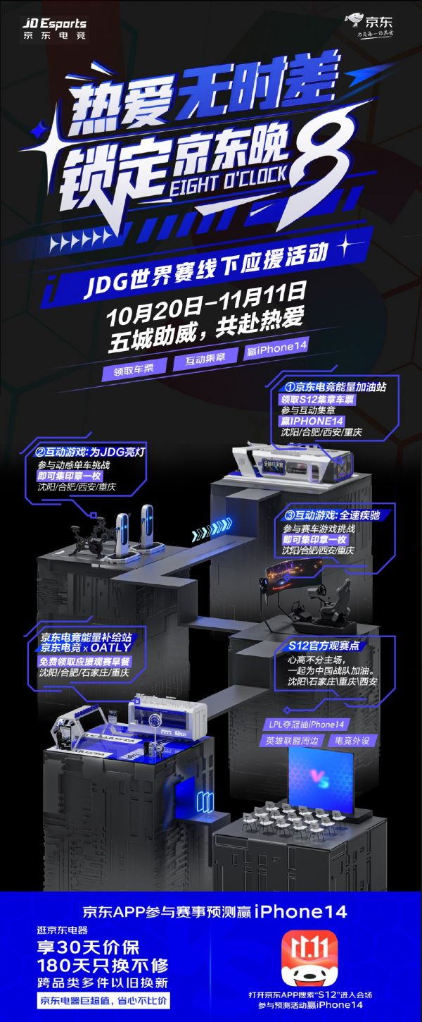 作为2022英雄联盟季中冠军赛中国区合作伙伴,京东电器全渠道门店在西安京东MALL、石家庄京东MALL、沈阳京东MALL和京东超体重庆店、合肥店开启 S12大型互动主题活动,为明星站队助威呐喊、释放热爱!门店现场还为电竞迷们准备了趣味电竞互动,超多周边等你来拿,线上参与预测还有机会赢万元大奖。