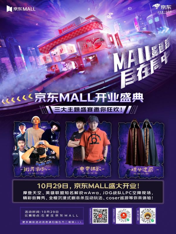 10月29日正式开业的石家庄京东MALL更是为消费者准备了“街舞潮趴、电竞狂欢、峡谷迷局”三大嗨玩主题狂欢盛宴,全天狂欢Party等你来打卡。“东北头号潮玩科技中心”沈阳京东MALL也为当地消费者准备了JOY U好嗨哦开箱街市,参与VR大寻宝活动,海量宝藏盲盒等你来探。同时,BIG JOY也即将空降沈阳,与到店的消费者共同欢度京东11.11。