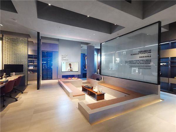 店面位于大湾区核心城市广州琶洲吉盛伟邦(负一楼B中庭),毗邻广州琶洲国际会展中心。店面设计以展示铝本色为主调性,一抹淡淡的最能代表铝本质的品质灰,搭配轻奢极简的陈列风格,最本质地向大家展示出“以铝代木.铝众不同”的新现代品质家具定制风。