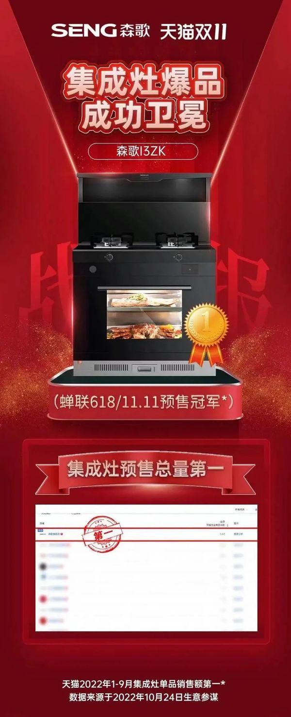 勇夺天猫集成灶预售榜T0P1的