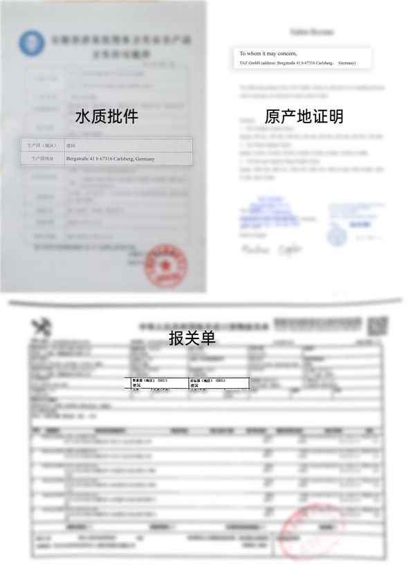 首先在水质批件,进口产品的水批上我们可以看到上面有明确的一行标注了原产地,上面写着原产地为德国,并且有标明生产国地址,这个是真实可查的;其次所有的进口产品都是从国外运输到国内,所以不可或缺的一环就是报关,一般经过了海关的产品最终都会有报关单,上面写着产品型号,特别注意有些品牌产品的报关单仅仅是配件(如滤芯),本质上差异很大;最后是出口国特定机构出具的证明其出口货物为该国家(或地区)原产的一种证明文件,上面会有具体公司名称及产品型号等等,这是一般我们所称的原产地证明。
