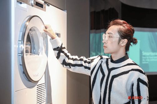 在面料养护演示时,ASKO洗衣机惊艳全场,直线型简洁的外观设计锁定了各方目光焦点,它拥有的21种不同程序,可以洗涤任何可机洗的衣物类型,满足高端设计、功能、耐久性以及环保需求。ASKO洗衣机突破了以往洗护产品的限制,第一次采用无胶圈设计,从根本上杜绝细菌滋生。它还具有超强漂洗程序,可以更深层有效地清洁衣物,婴儿、敏感肌人士均适用。滚筒洗衣机获得过环保标准“北欧白天鹅生态”认证以及防过敏、防哮喘认证,可以有效守保证除菌率高达99%,是生活中的贴身小助手。李鹏博表示品味生活离不开对衣物的养护,从“衣”开始,学会如何善待自己,便懂得了如何生活,而干衣机的蝶形烘干和蒸汽功能可实现衣干即停,杀菌除皱,完美造型给予我们一天的好心情。