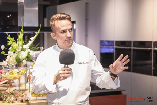 品尝美味之前,Chef Giovanni团队邀请在场来宾一起进行万圣节饼干的制作,与现场来宾进行交流互动,提升来宾的参与感。移步体验区,嘉宾将制作好的饼干放入ASKO特别准备的烤箱之中,体验区简单干净的线条和纯色设计烘托出宁静高雅的氛围,使场合内充满“家”的舒适感。主持人与Chef Giovanni现场互动,共同探讨他对美食的品质要求以及对生活美学的感悟,分享自己对于青岛人文环境以及鲁菜的体验,并热烈欢迎大家光临他在青岛新开的意大利餐厅。