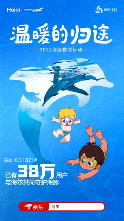 好方案升级全新购买体验。以前用户双11买东西就是单纯购物,海尔智家创新形式,将购物与公益相结合,不仅能买到好产品,更能提升获得感。在双11之前,海尔智家上线了“温暖的归途”海洋公益活动,并联合京东物流以海洋公益为主做了5万个小家电包裹箱的视觉改造。用户参与小程序互动可获取“减碳能量”兑换救助物资,截止到31日21点,已经有38万用户和海尔智家一起守护海豚,守护蔚蓝地球。