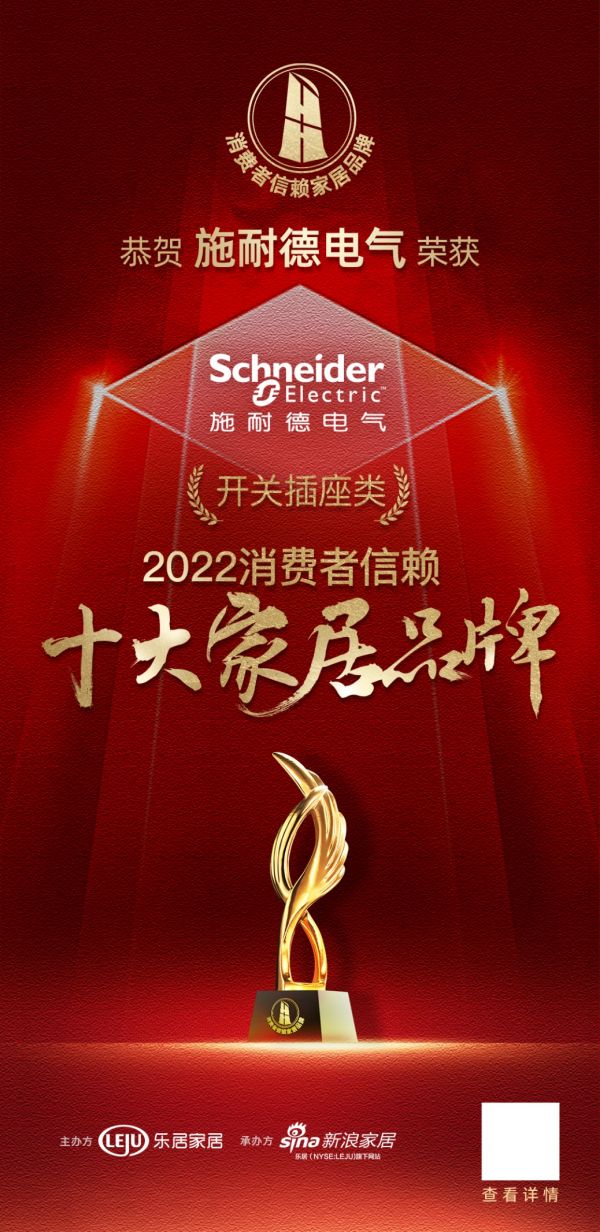 2022年11月1日,历时52天,历经网络票选、专业评审的「2022消费者信赖十大家居品牌」开关榜单正式揭晓。其中,施耐德电气荣登「2022消费者信赖十大家居品牌」开关榜单!