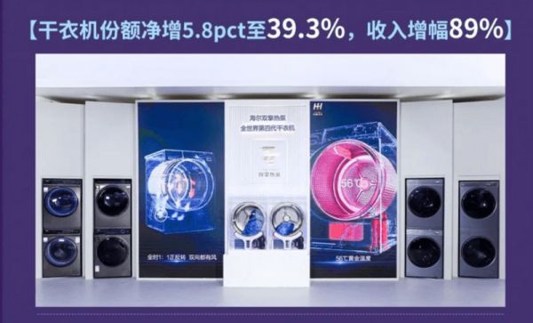 此外,海尔干衣机收入增幅89%,整体份额增至39.3%,成为又一稳居行业第一的智家新品类。