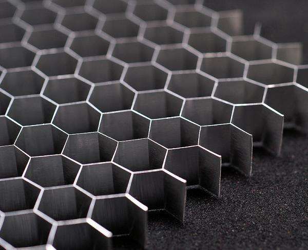 六角铝蜂窝以周期性排列塑造稳定性结构,无论哪一个角度受到强冲击力,剩下 5 个角度共同平衡卸力,把以往的点接触受力拓宽成宽面受力承压,减缓冲击。