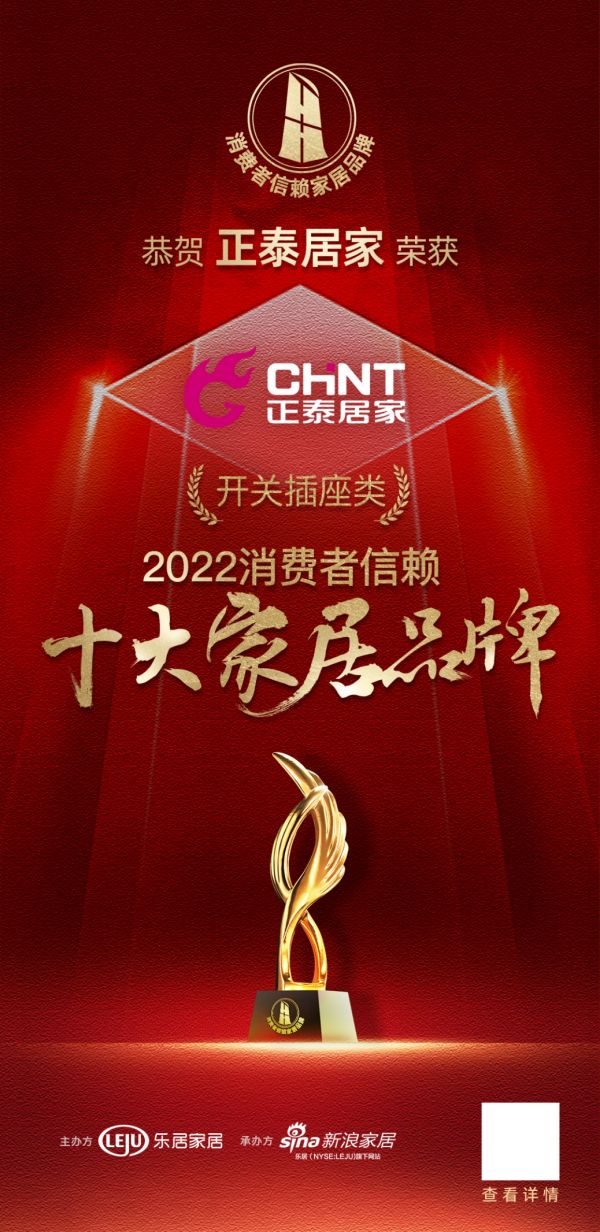 2022年11月1日,历时52天,历经网络票选、专业评审的「2022消费者信赖十大家居品牌」开关榜单正式揭晓。其中,正泰居家荣登「2022消费者信赖十大家居品牌」开关榜单!