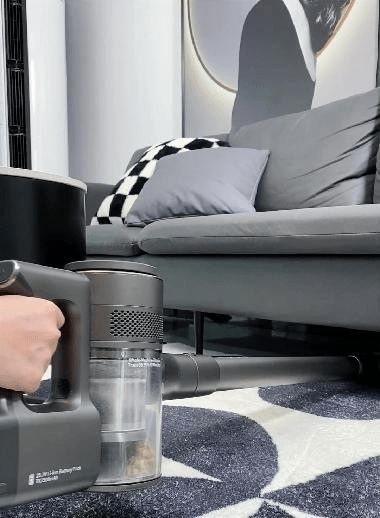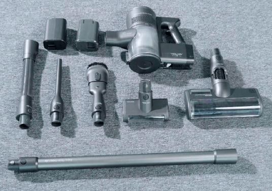 在手持的主机部分,自带一个圆形LED数显大屏,可以实时显示吸尘器的工作状态及清洁区域的脏污程度。开启AUTO智能模式,红外线感应技术可以灵敏检测各处微尘,自动调节吸力大小。无需手动切换,操作简单方便,即使是老人也能轻易上手。搭载10W+转/分钟的BLDC无刷电机,吸力最高可达150AW。日常应对家居大部分的清洁场景,是完全没有问题的。配合6重精密过滤系统,内含多锥气旋技术和双海帕滤芯,可以有效吸附大于0.3μm的灰尘颗粒,拦截99.9%的微尘、尘螨及其他有害物质,严防二次污染,呵护呼吸道健康。