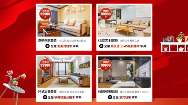 全包圆双十一最令人心动的福利非“祼价装新家”莫属,中式、北欧、欧式、美式、新中式、简美、现代简约、轻奢、日式等近百款流行样板间,除优惠“大放价”外,更有搭配好礼相赠。比如,签约前卫个性的现代简约样板间送全屋北美白蜡木家具,签约舒适惬意的北欧风情样板间送全屋北美进口FAS级白橡木家具,签约国风美韵的中式古典样板间送全屋收藏级金丝檀木家具,签约随心不凡的格调轻奢样板间送全屋意式轻奢家具。品味升级、品质升级,美好生活亦升级。