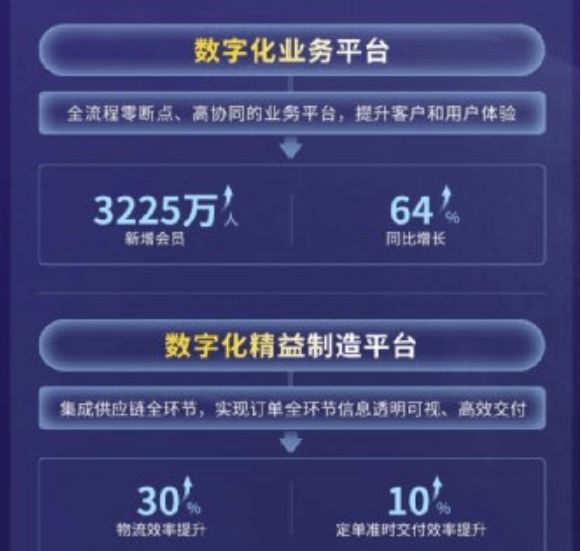在用户数字化运营平台上,海尔智家围绕消费者产品购买、使用、服务的全生命周期,重构业务流程,全面提升用户口碑和复购率,不断迭代用户场景体验。前三季度,新增会员3225万人,增长64%;在精益制造平台上,海尔智家持续提升各个环节的效率,园区物流效率提升30%;此外,第三季度设计成本也得以持续优化。