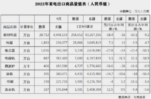 奥维云网数据显示,截止今年9月,中国家电市场国内零售规模为5103亿元,同比下滑6.1个百分点。