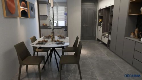 餐厅延续这种风格,深灰色的座椅中,奢华正暗流涌动,随时呼之欲出。同时,伸缩式餐桌为主人提供流畅的用餐场景,为生活带来更多便利。
