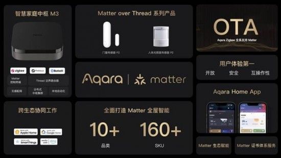 在发布会上,Aqara表示坚持以用户体验为核心,全系列 Aqara 的网关通过 OTA 升级支持 Matter*,用户无需购买新设备,仅需将手中原有的网关设备,如:Aqara 网关 M2,Aqara 网关 M1S 升级固件后即可支持 Matter,并让子设备也支持 Matter,体验到真正的万物互联。