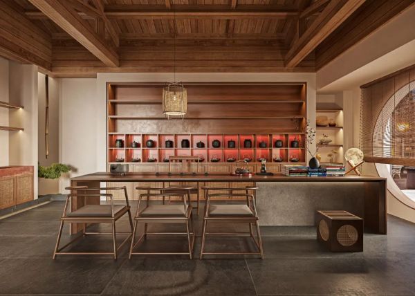 A:就是看到我们的作品一步一步的呈现,只有达到预期效果,客户也满意,我们也很满意。去年我们做了一个那个浮梁茶空间的会所,客户的需求就是想要一种新型的模式。我们当时就采用了这种比较流行的这种侘寂和中式混搭了一下,最后的效果让人眼前一亮。