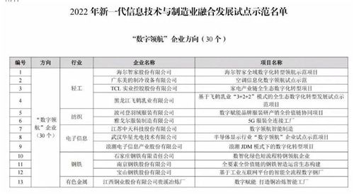 10月31日,工信部公示了全国首批“数字领航”企业,共30家。其中,青岛3家上榜,分别是位居榜首的海尔智家,以及赛轮集团和中车四方,入选企业数量为全国城市最多,呈现领跑之势。