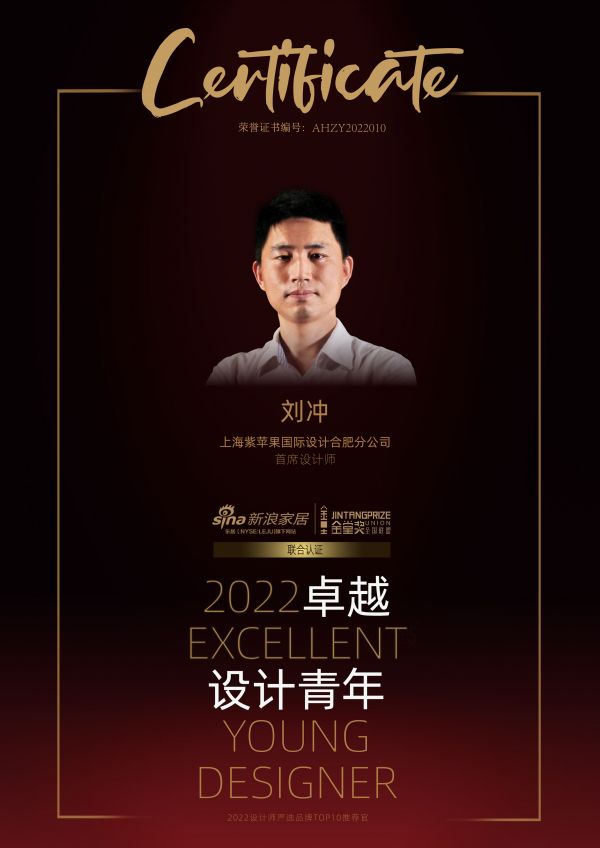 【刘冲】:很荣幸能够获得这个荣誉,这也是对我们室内设计师工作能力的一认可。在以后的设计之路上,我会继续坚持用优秀的设计为客户提供更高品质的服务,提升每一位业主的生活品质。