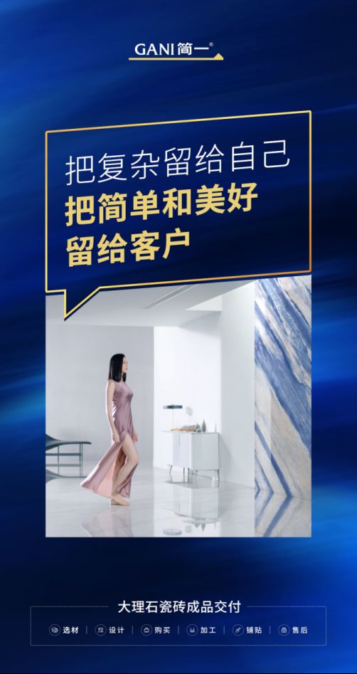 在产品端,简一的大理石瓷砖有着色系广、纹理多、硬度高、耐磨防滑等优良的物理性能,深度还原了大理石的装饰效果,让更多人享受到自然之美;在工艺端:简一独创0.5mm密缝连纹铺贴技术,让瓷砖铺贴呈现不分割的整体美、不断线的流畅美,真正实现“无论铺多少片就像一整片”的空间效果;在服务端,一户一方案设计服务、全程汇报施工进度服务、十年质保,终身服务的售后保障……真正让客户感受到了简一的专业与贴心,体验感大大上升,真正做到了让客户省心、放心、暖心、开心。