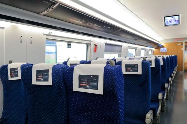 以定制建立高端品牌认知,金帝从产品、设计、服务、形象等多个维度入手赋予品牌差异化优势,来构建企业核心竞争力。此番冠名的高铁专列将金帝全新品牌元素融入了每个细节,从外部车身醒目亮眼的品牌名到高铁内部空间的行李架、座椅、车门附近的广告牌全方位覆盖,在候车、乘车等封闭式环境下多次触达客户群,为品牌营销渗透提供强大支撑力。